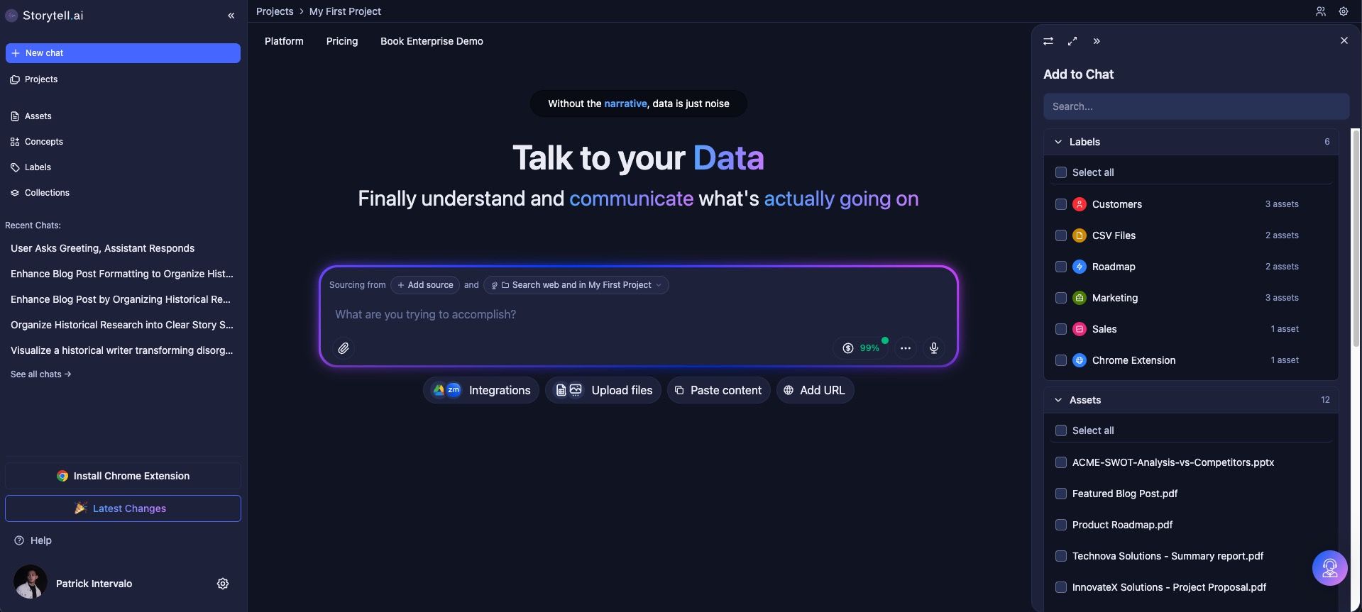 Storytell’s interface has been redesigned for smoother navigation, chat, and content exploration, making it easier than ever to find, organize, and interact with your knowledge.