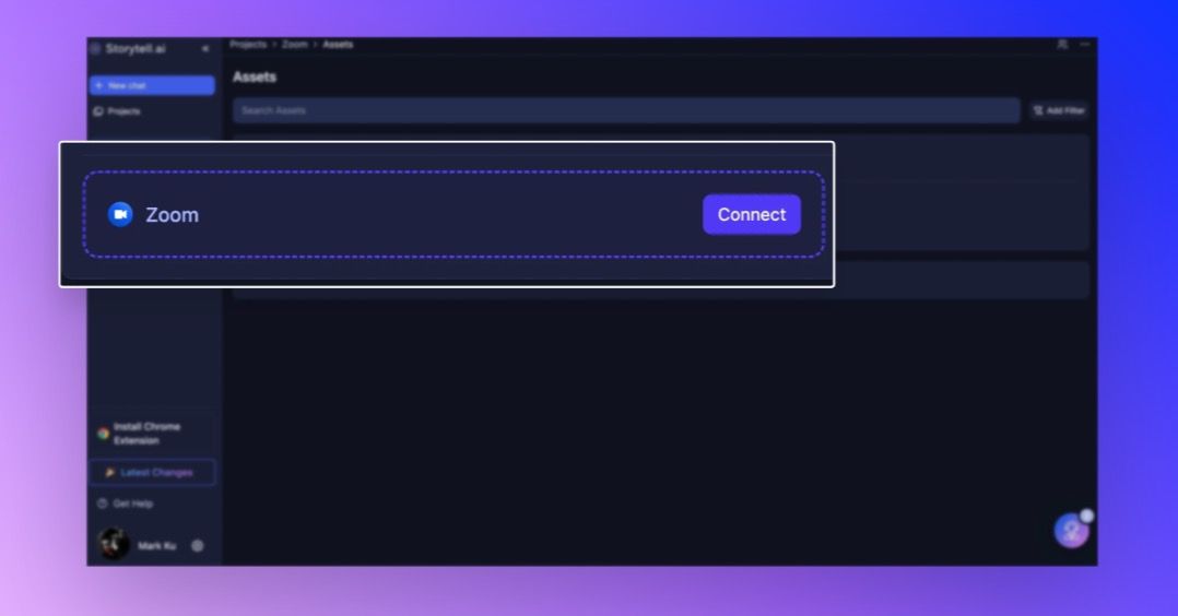 2. From Assets - Open the Assets sidebar, find the Zoom section, and click Connect