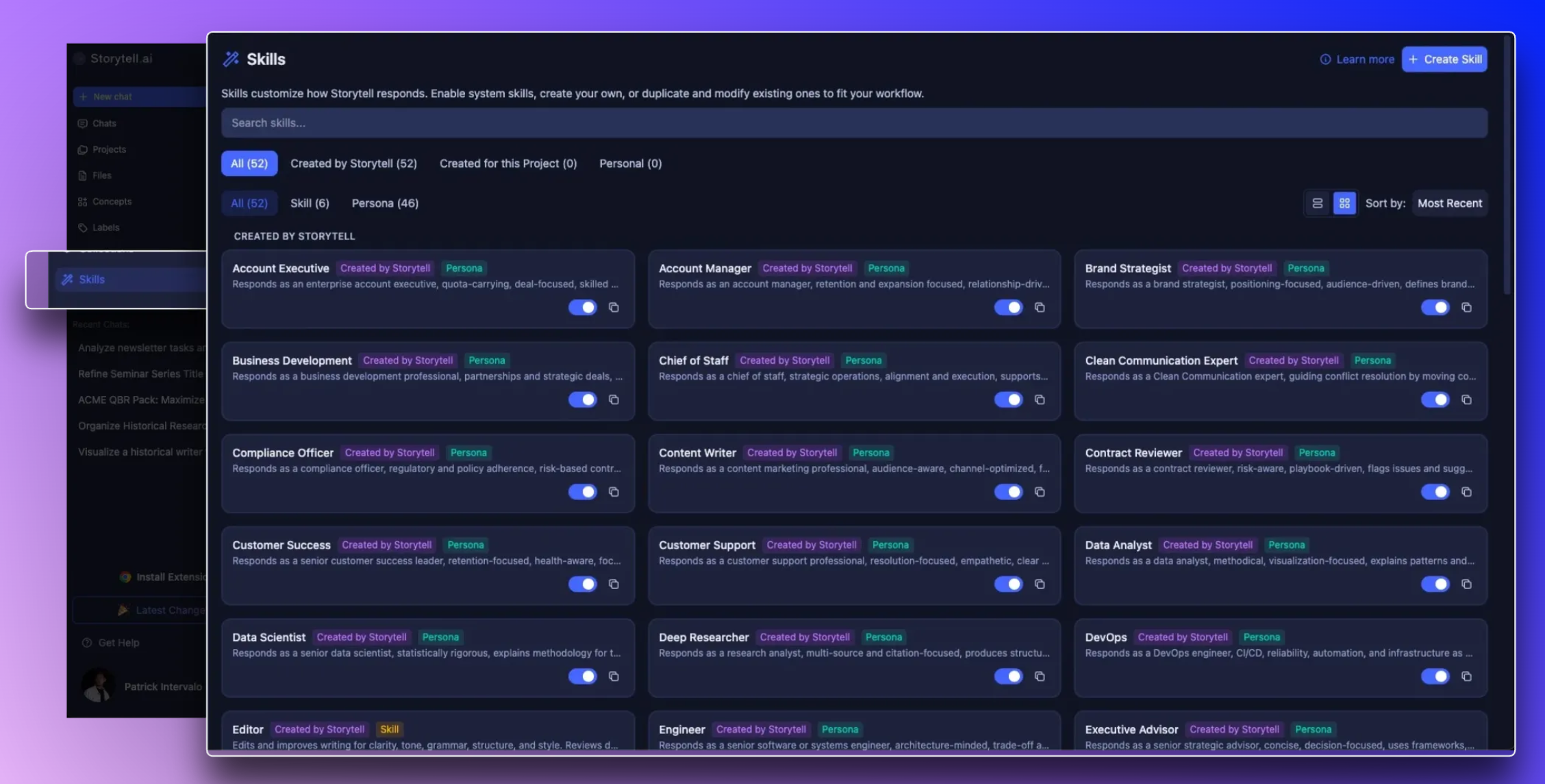 • Control: Choose which Skills are active for a message or let Storytell decide automatically.