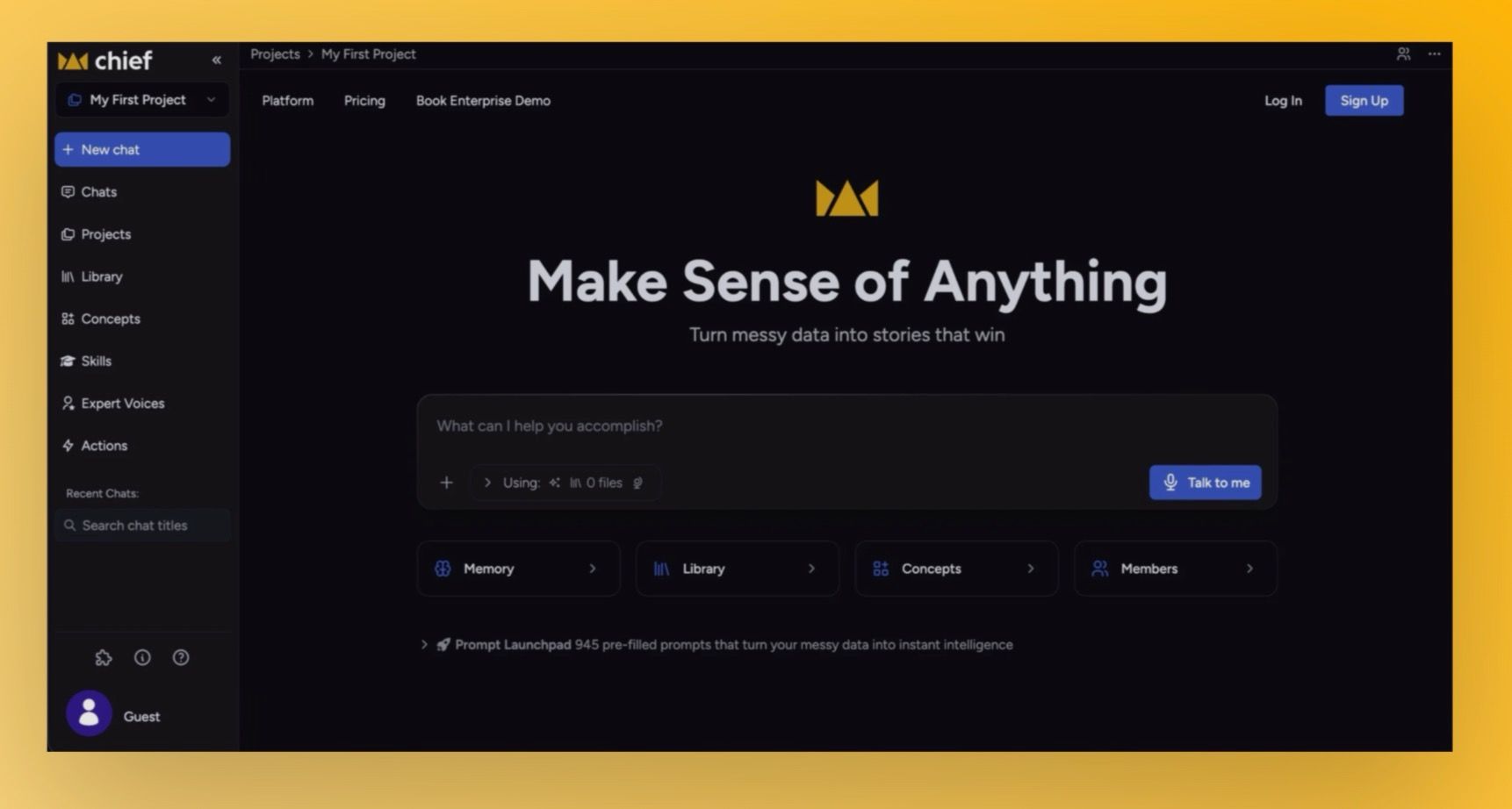 • Live Sessions: Chief will listen passively during your calls and meetings — no prompting required. It surfaces real-time action suggestions, expert perspectives, and strategic cues as the conversation unfolds, so you're always the smartest person in the room.