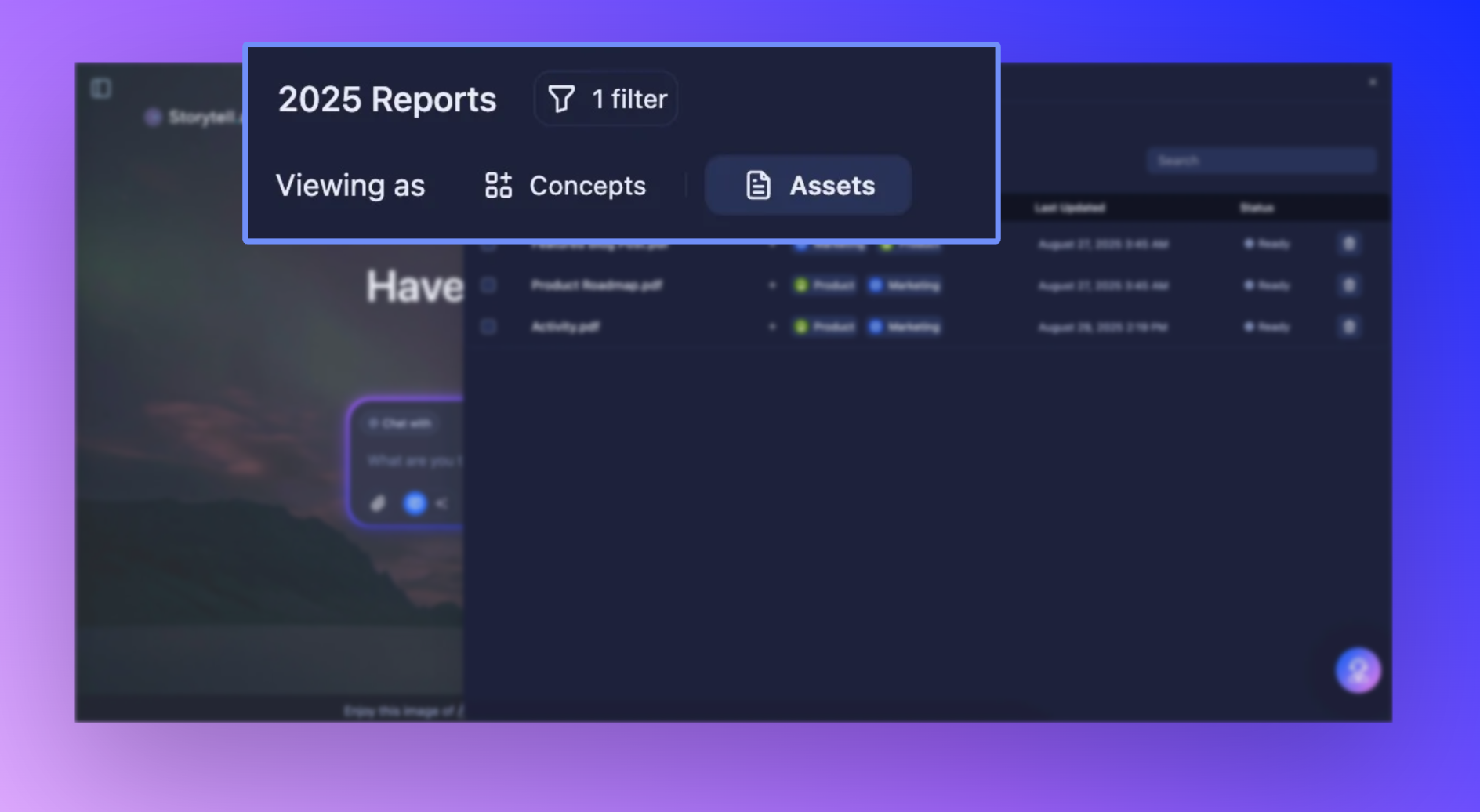 Say goodbye to switching between separate panels for assets and concepts. We've consolidated everything into one streamlined knowledge panel that handles both.